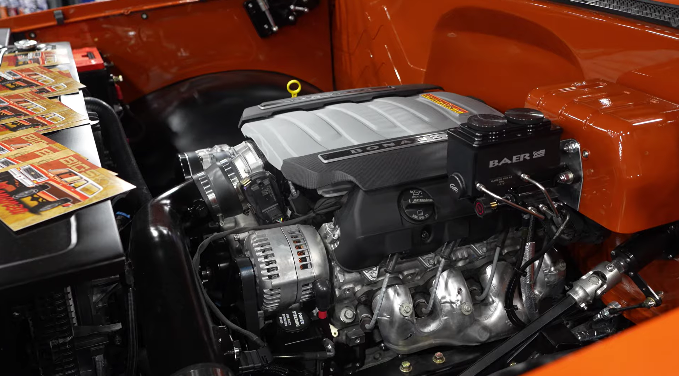Braking is handled by Baer brakes with a Baer master cylinder, paired to an electric Bosch booster setup from InTech Auto. Clean, compact, and modern.