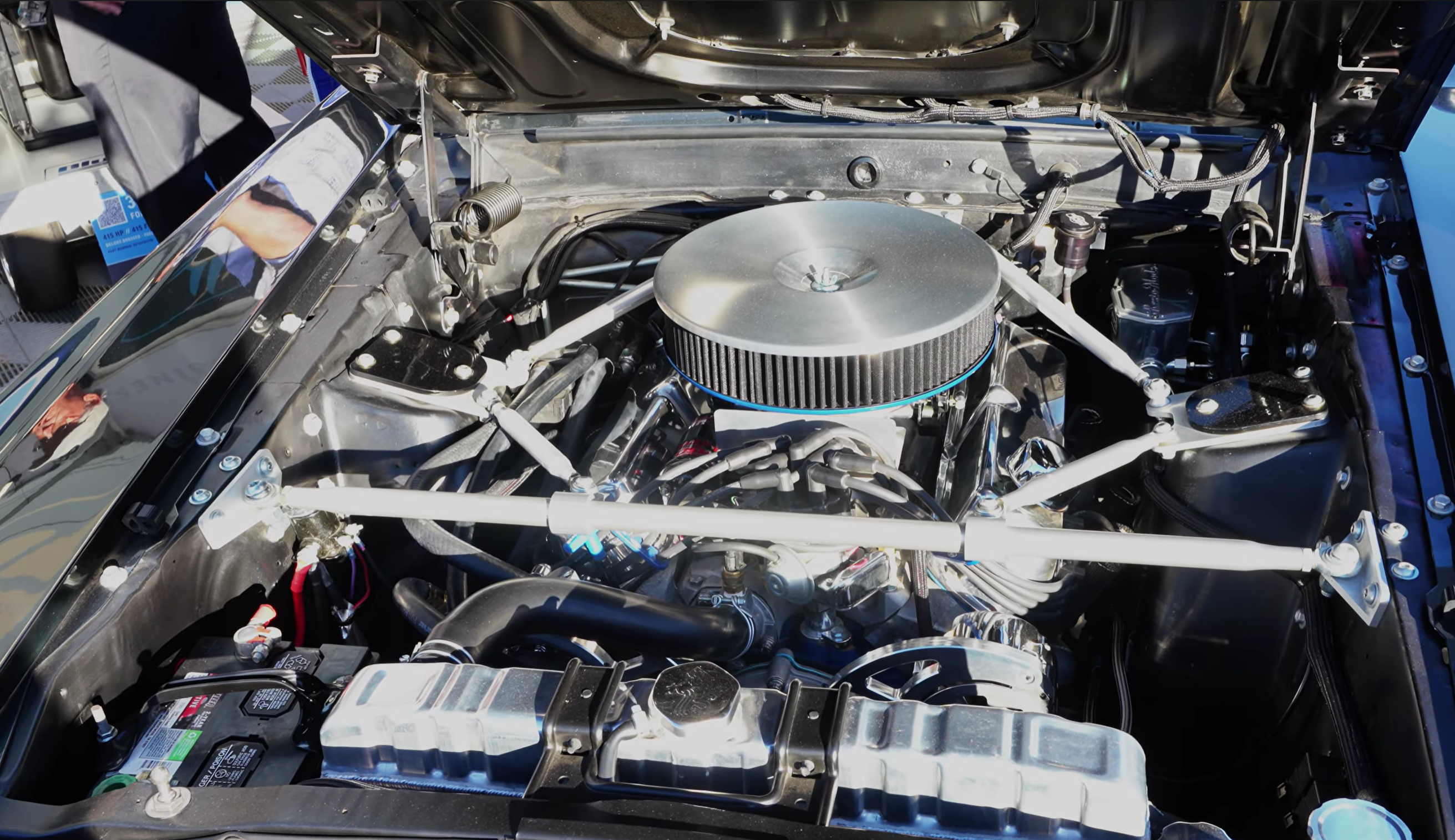 The engine is fuel injected with Holley, and the interior features TMI upholstery that keeps the factory look but adds bolstering and comfort. Wood grain wheel, clean dash, AC, and overdrive. It’s exactly what most people want their Mustang to be after they’ve “finished” it.