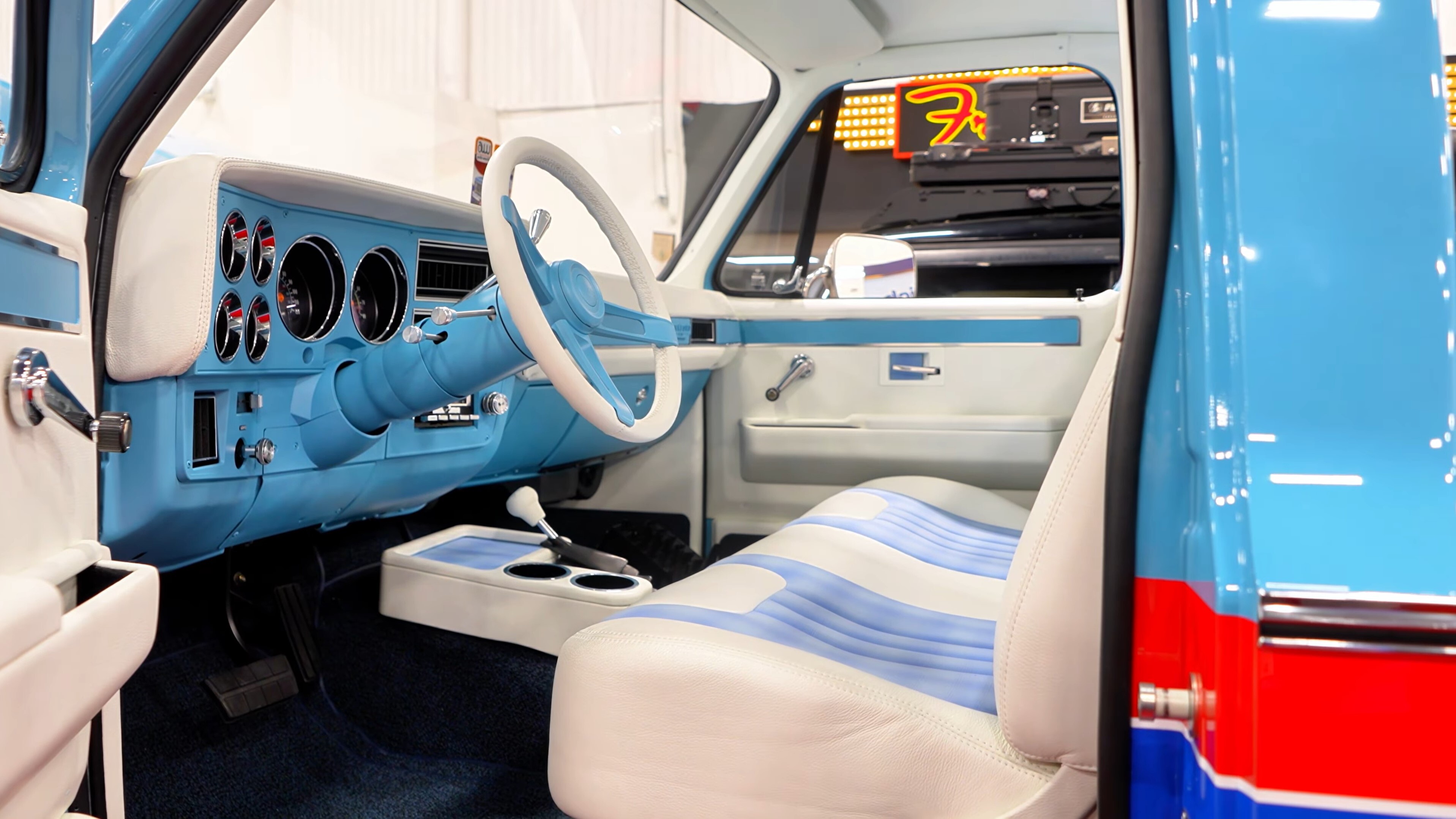 Inside, the attention to detail is just as impressive. The interior, crafted by Ko Ko Custom Upholstery in Salt Lake City, blends modern tech with vintage design. CNC cut aluminum accents, 3D printed parts, wireless charging, and custom storage pockets make it as practical as it is stylish. The use of Dixon flannel material adds a perfect touch of texture and attitude.
